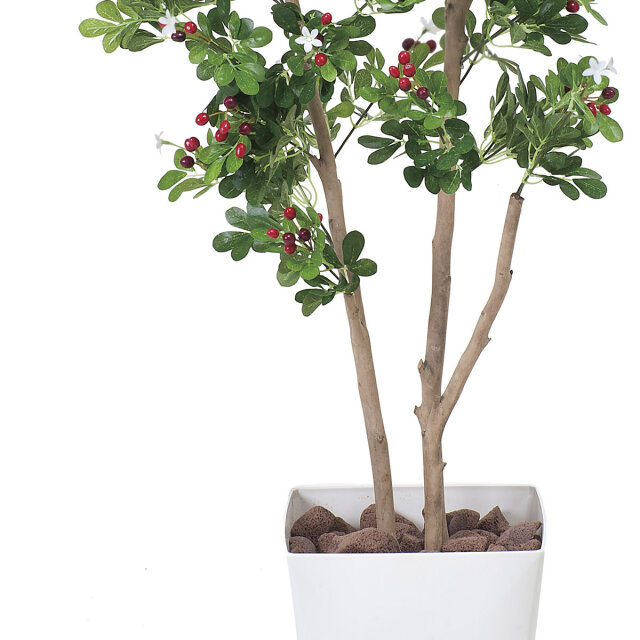 小さな赤い実と白い花がアクセントになり、