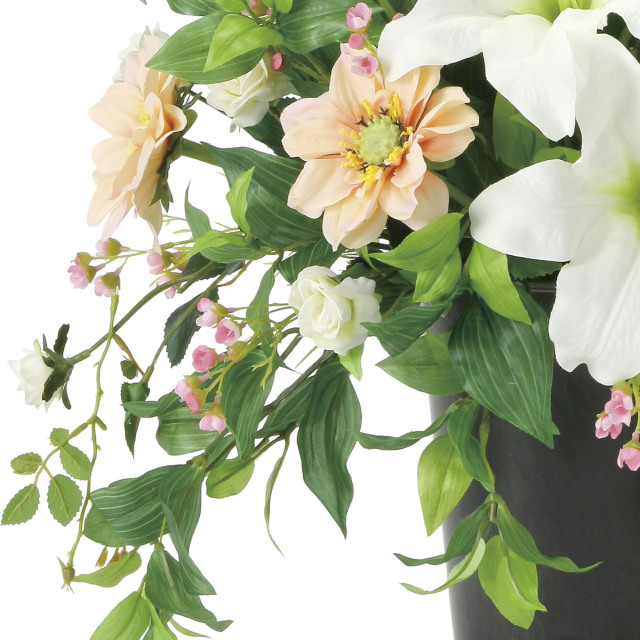 造花は、水やりの必要がなく衛生面や周囲の環境により、 生の植物では、適応できない場所でも比較的簡単に装飾できるのが魅力です。